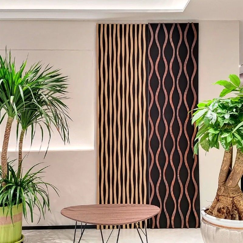 แผนผนังสล็อตเสียงไม้ ด้านภายในที่ทันสมัย ป้องกันเสียง การตกแต่งผนัง แผนผนังเสียง