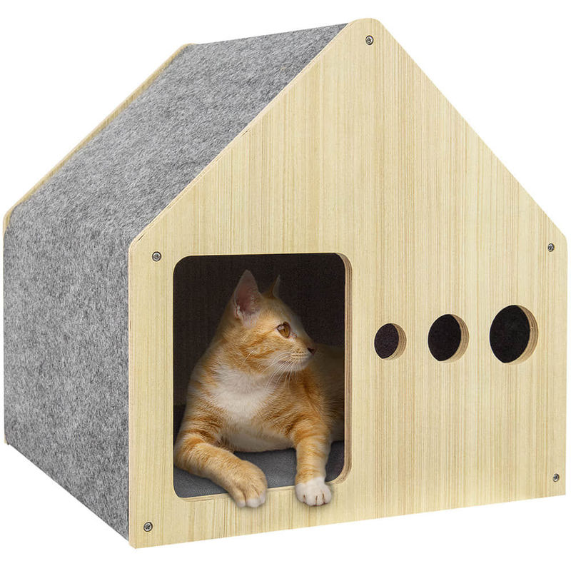 เฟอร์นิเจอร์สำหรับสัตว์เลี้ยงที่ทำจากไม้ เตียงเต็นท์สำหรับแมวทำด้วยไม้ที่มีดีไซน์ทันสมัยและพื้นผิวเตียงที่นุ่มสบายมอบประสบการณ์การพักผ่อนที่ดีเยี่ยมสำหรับแมวของคุณไม่ว่าจะเป็นที่บ้านหรือในร้านขายสัตว์เลี้ยง เต๊นท์นอนนี้เป็นสถานที่พิเศษสำหรับแมวที่จะเพลิดเพลินไปกับทุกช่วงเวลาอย่างสบายและสงบในขณะเดียวกัน การออกแบบให้เหมือนเต็นท์ยังสามารถตอบสนองความรักของแมวในพื้นที่ส่วนตัว เพื่อให้แมวรู้สึกปลอดภัยและเป็นส่วนหนึ่งของมัน