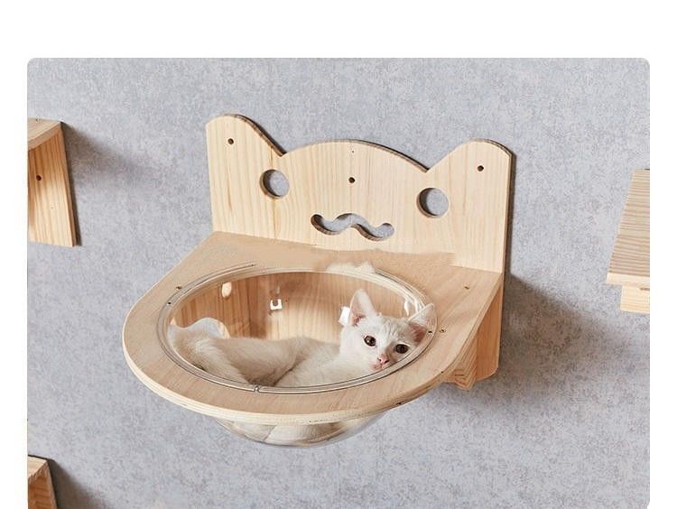 ของเล่นสัตว์เลี้ยงติดผนังแมวปีนต้นไม้กรอบต้นไม้ไม้อวกาศแคปซูลแมวผนังสปริงบอร์ดบ้านบันไดเฟอร์นิเจอร์แมว
