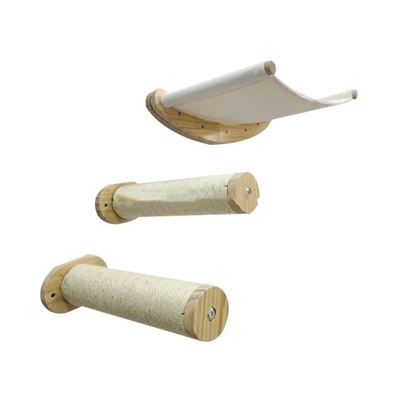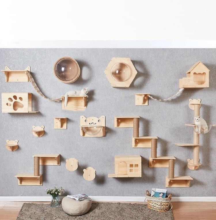 โครงไม้: โครงสร้างหลักของชุดโครงแมวปีนแบบแขวนผนังทำจากไม้เนื้อแข็งหรือแผ่นไม้คุณภาพสูง ซึ่งได้รับการออกแบบและแปรรูปอย่างพิถีพิถันโครงไม้ให้การรองรับที่มั่นคงสำหรับชุดแมวปีน ทำให้มั่นใจได้ถึงความทนทานและความมั่นคง