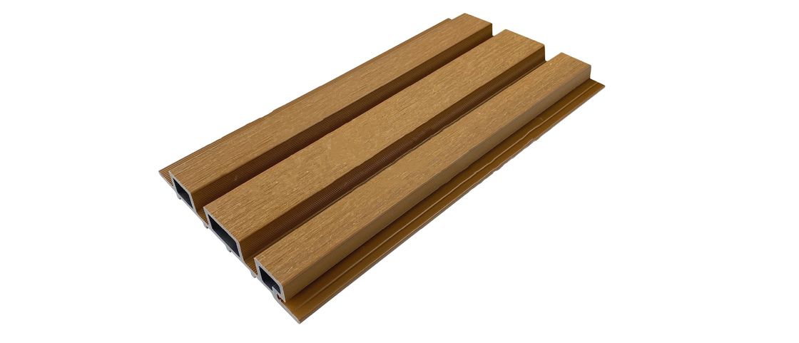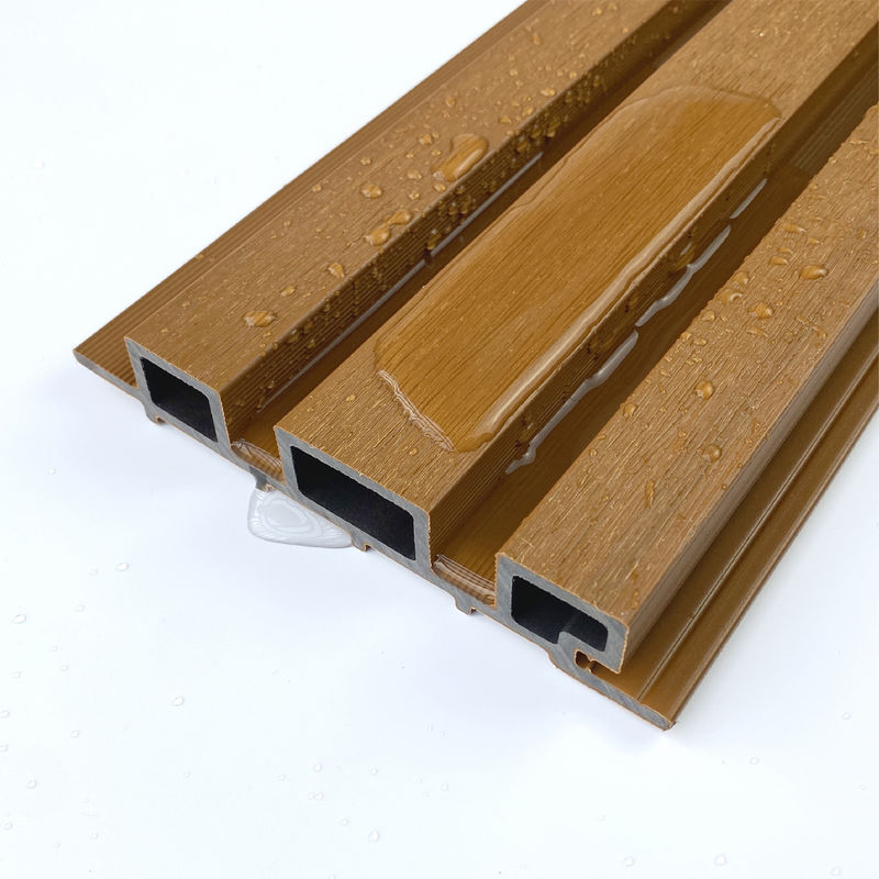 วัสดุผสมไม้-พลาสติก: พื้นผิวของแผ่นผนังทำจากวัสดุผสมไม้-พลาสติก ซึ่งเป็นการผสมผสานข้อดีของพื้นผิวไม้และพลาสติกเข้าด้วยกันWPC นำสีที่เข้มข้นและพื้นผิวไม้ธรรมชาติมาสู่แผ่นผนัง และมีคุณสมบัติกันน้ำ ป้องกันการกัดกร่อน และทนต่อการสึกหรอ เพิ่มความทนทานและความสวยงามของแผ่นผนัง