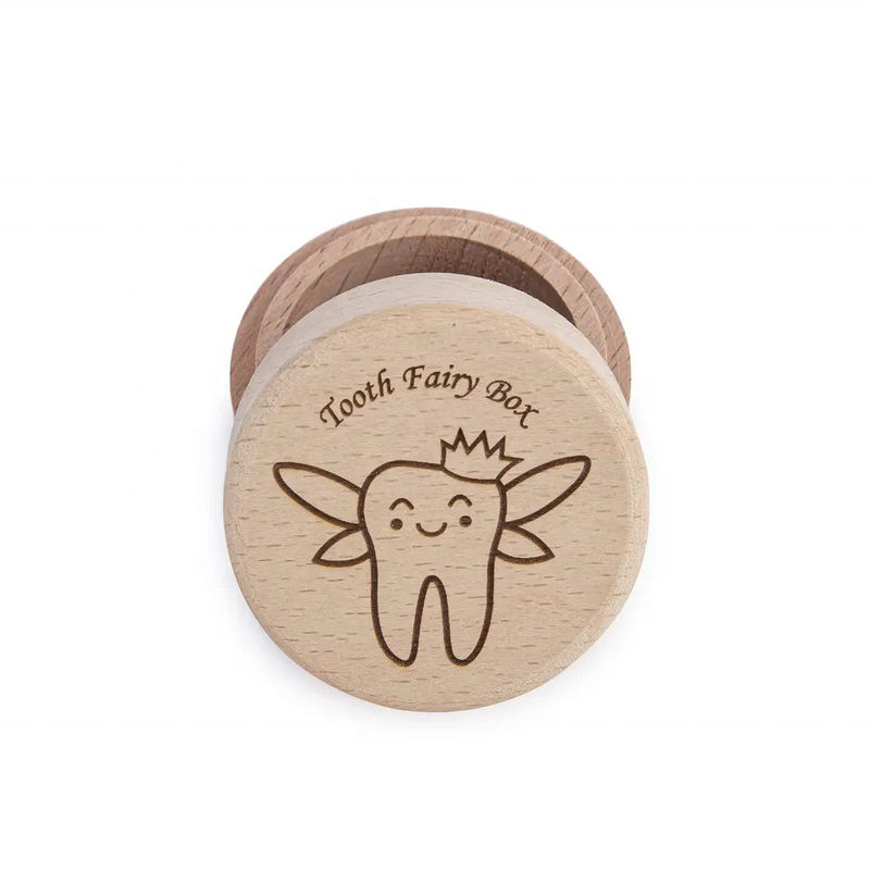 ผู้ถือนางฟ้าฟันกล่องไม้ที่กำหนดเองส่วนบุคคลฟันของที่ระลึกเก็บฟันที่มีฝาปิดฟันนางฟ้าหมอนเด็กฟันนางฟ้ากล่อง