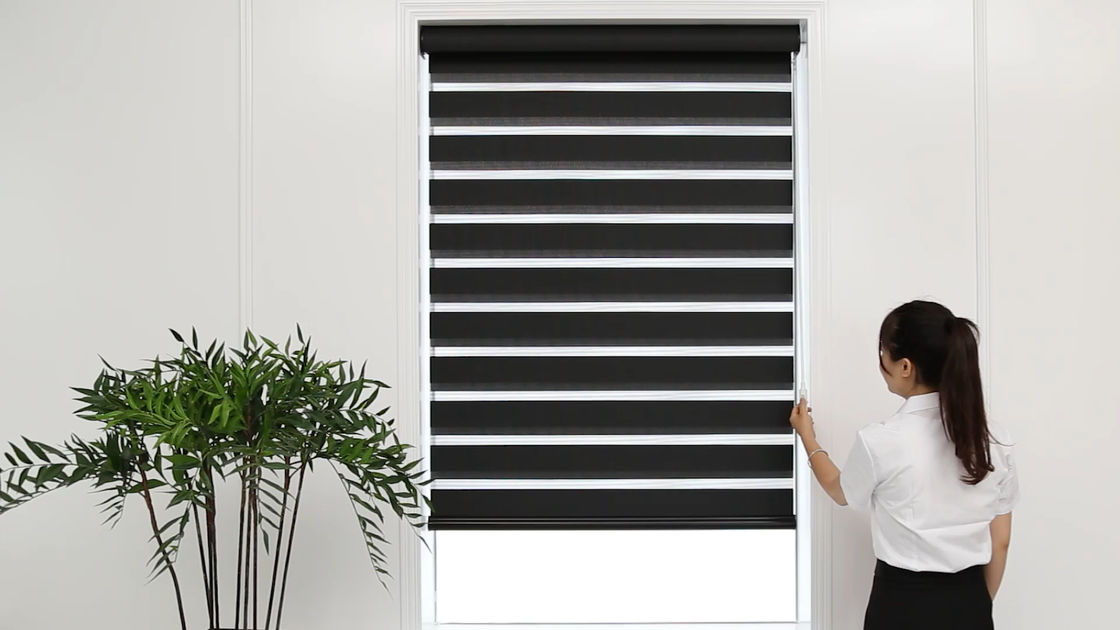 CE Black Automatic Zebra Blinds มู่ลี่ควบคุมระยะไกลทั้งกลางวันและกลางคืน 0