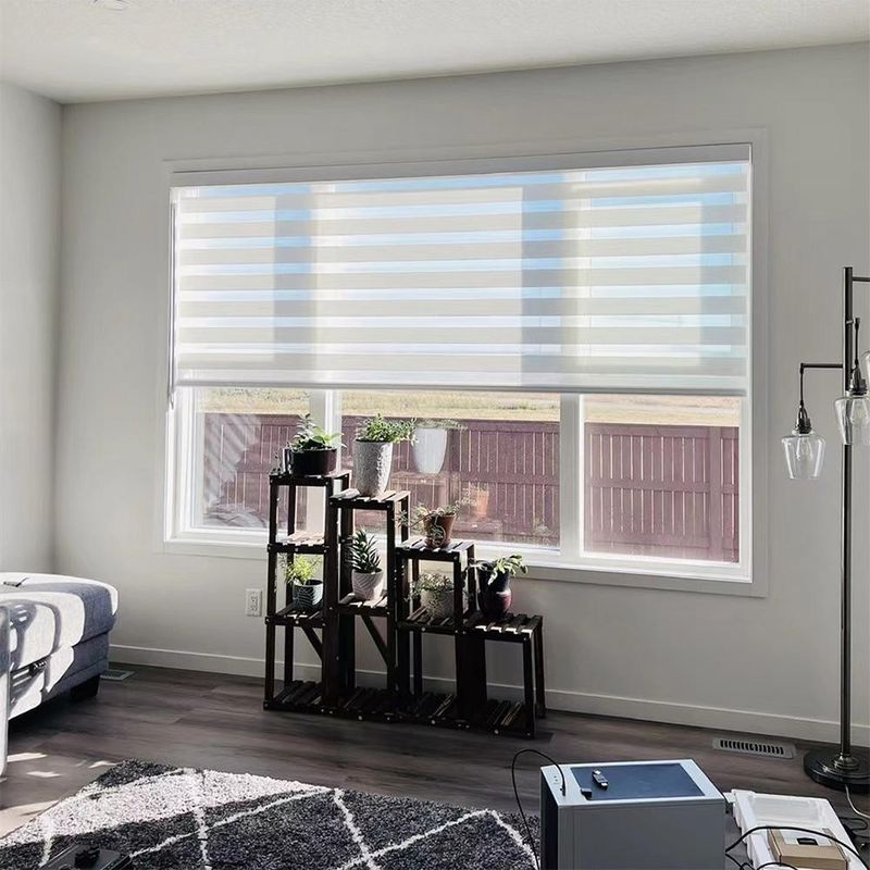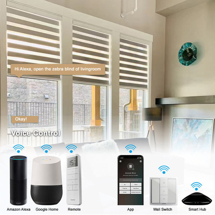 ชื่อ ขนาดที่กำหนดเอง Blackout ม่านหน้าต่างมอเตอร์ไร้สาย Shade Double Layer Smart Zebra Blinds