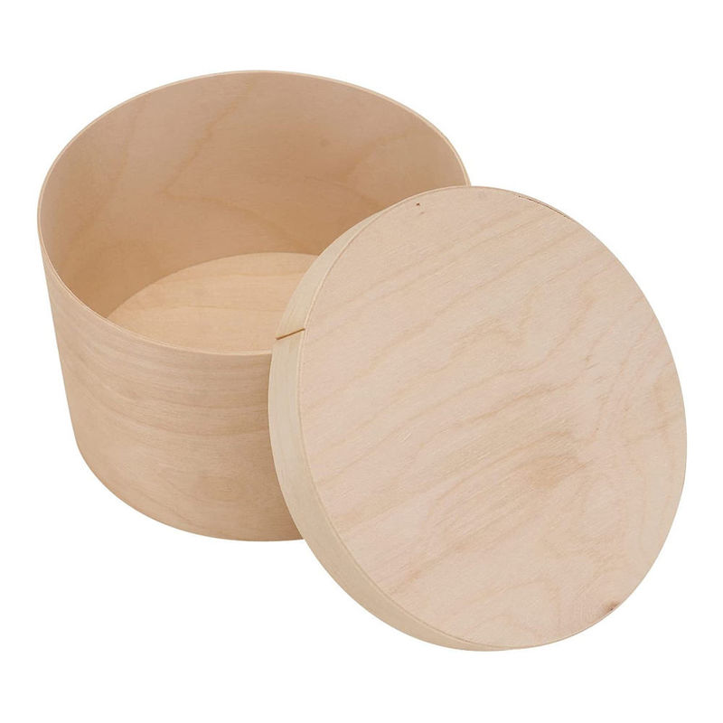 OEM ODM กล่องเก็บของไม้ทรงกลมที่ยังไม่เสร็จพร้อมฝาปิด กล่องไม้ทรงกลม