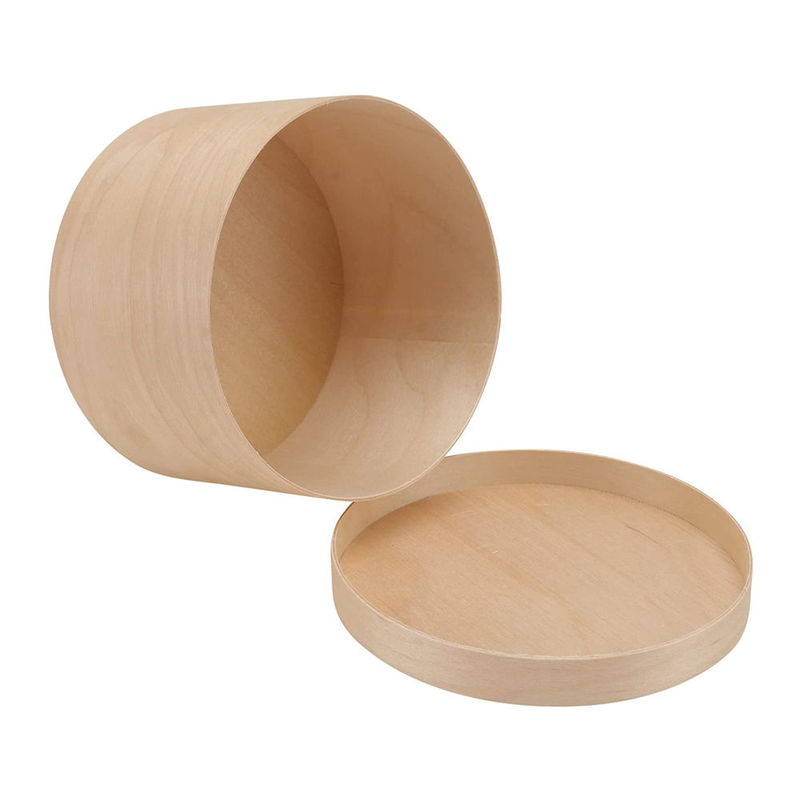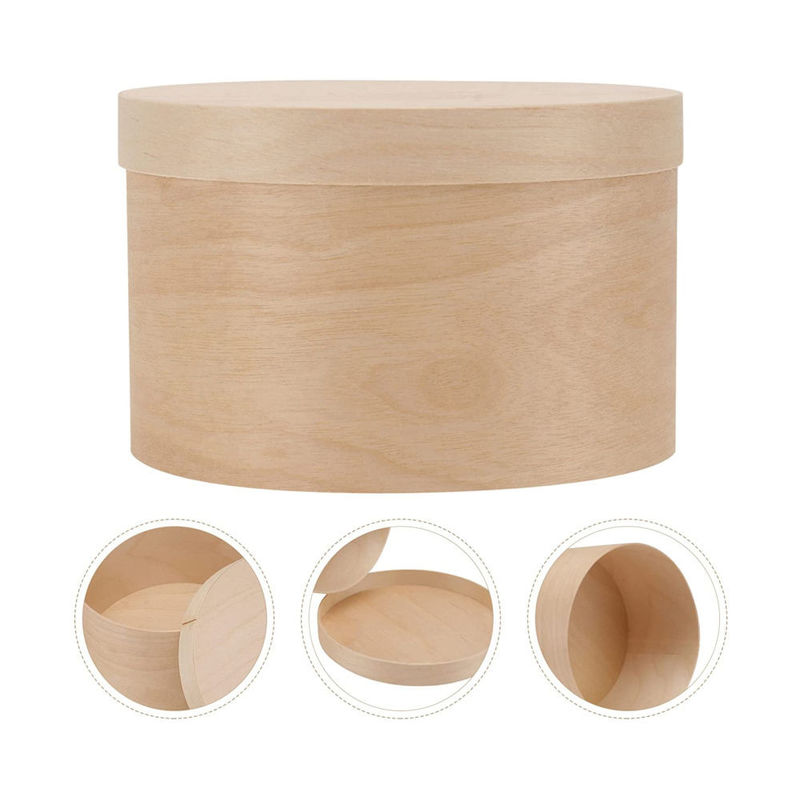 OEM ODM กล่องเก็บของไม้ทรงกลมที่ยังไม่เสร็จพร้อมฝาปิด กล่องไม้ทรงกลม 0